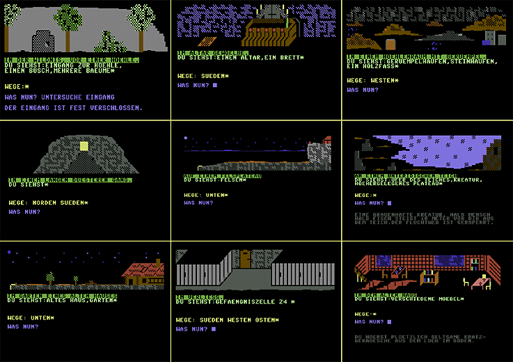 Die Spiele basieren auf einem sogenannten 2 Wort Parser System und wurden besonders auf Einfachheit und Geschwindigkeit in der Bedienung optimiert. Die Spiele wurden schon damals mitte der Achtziger von e.b teilweise programmiert aber nie fertiggestellt. Die Hoehle war in der alten original Version wenige Räume groß und wurde im März 05 komplett (inkl. Grafiken) neu Programmiert.